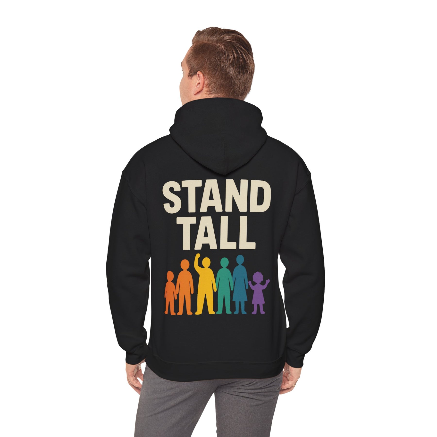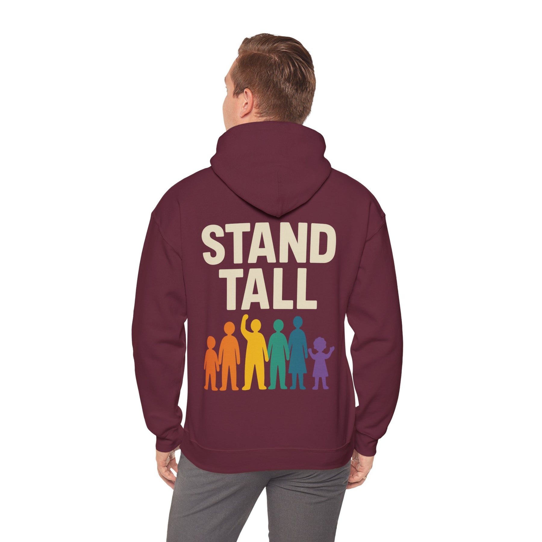 Embrace comfort and confidence with this stylish Unisex Heavy Blend™ Hooded Sweatshirt. Perfect for any casual occasion, it features a bold and inspiring design that encourages everyone to 'Stand Tall.' The cozy feel of the sweatshirt makes it an ideal choice for chilly days or lounging at home. Whether you're running errands, enjoying a casual outing, or looking for a cozy layer for a night in, this sweatshirt fits seamlessly into your lifestyle. It’s perfect for adults who appreciate quality and style, making it a great gift for friends and family during holidays like Christmas, birthdays, or motivational events. Show your pride and positive spirit every time you wear it!